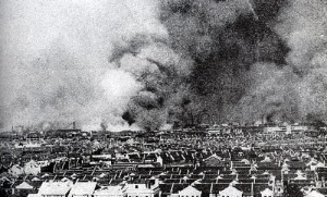 Chapei on fire north of the International Settlement, August 1937