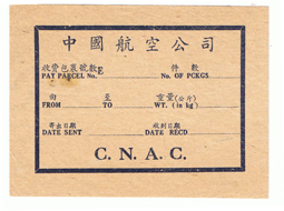 One of the best aspects of the last couple of weeks is the number of CNAC-related people and aviation-o-philes who've been contacting me to share their enthusiasm for China's Wings. One of them is Daniel Kusrow, who has a collection of CNAC luggage labels, timetables, and posters. He sent scans of some of his better items this morning, and I'm delighted to post four of them here. (Don't miss the gorgeous poster at the bottom of the page.)