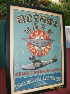 CNAC luggage labels and an airline poster