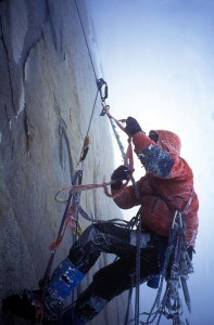 That's me jumaring on Cerro Torre's headwall in a storm in 1996 -- right through the section that has just been chopped