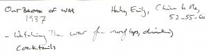 Here are a few of the cards themselves. This one is from Emily "Mickey" Hahn's China to Me. And since my writing is next to indecipherable, sometimes even to me, that says, "Watching the war from rooftops, drinking cocktails." (I count myself the latest in the long line of men to fall in love with Mickey Hahn.)