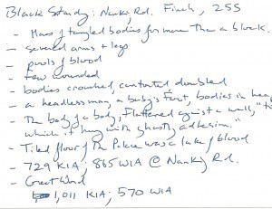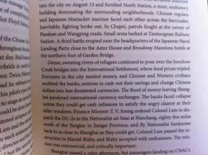 This one is sourced from the New York Times, describing the fighting on August 14. The bullet points describe intense shelling, ground combat all day; Japanese naval gunfire; ferocious hand to hand combat; Idzumo attacked again; field guns, mortars and naval gunfire support; 8,000 Japanese v. 30,000 Chinese; Japanese stripping the crews of their warships to bolster their marine units ashore.