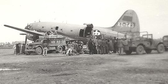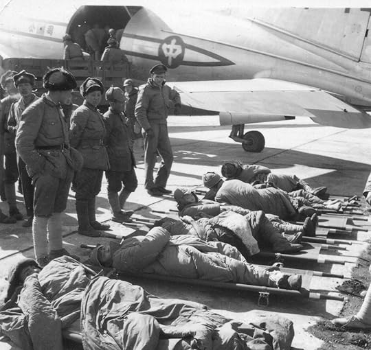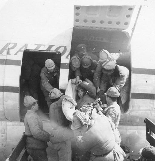 CNAC C-46 evacuating wounded Nationalist soldiers – Pilot Joe Michiels standing in background