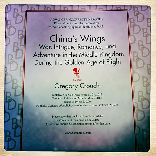 Well, after an absolutely epic work push, I finished reading the page proofs of China's Wings and returned them to New York. Another big "tick" made. I'm very happy with how everything is shaping up.