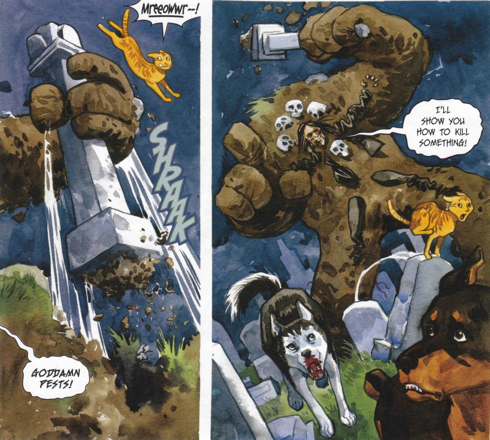 Those of you who've read The Mysterious Flame, check out these panels from the fourth issue of Evan Dorkin and Jill Thompson's Beasts of Burden mini-series. (Thanks to The Groovy Age of Horror for posting the scan, since I've not read that issue yet.)
