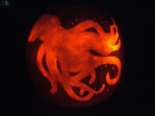 So there I was, staring at this pumpkin, and it’s just sitting there like a gourd. I did not want to chop up this pumpkin. In fact, I wanted specifically to not chop up this pumpkin. No problem. I’m a good proctastinator. So I just openend up that file with the kraken in it, which looked a hell of a lot better compared to this pumpkin. And a hour later that kraken was nothing more than calamari fixins.