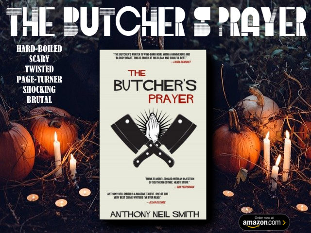 Anthony Neil Smith is an English professor and crime novelist, born and raised in Mississippi, now teaching at Southwest Minnesota State University. The Butcher’s Prayer is his fifteenth novel. He loves cheap red wine and Mexican food.