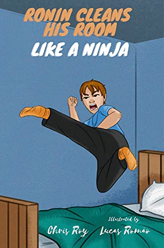 Author Chris Roy understands kids. He presents Ronin Cleans His Room Like a Ninja in short, quick sentences, much like ninja moves I guess, and there is no preaching or pontificating about the right thing to do. The message is cleverly woven into Ronin’s aim to become the best ninja. The book works very well visually with illustrations by artist Lucas Romão. I also liked the page layout with one side being images of Ronin’s eloquent expressions/actions and Uncle Max and the other being the text laid over various images of Ronin’s room. The colour palette will appeal to boys as well with vibrant shades of blue.