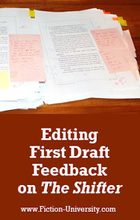 I came across this early post from 2010 where I showed excerpts from the very first draft of The Shifter (back when it was still The Pain Merchants), and the feedback I'd received from my critique group. Not only did I share what they said, I shared what I did, and explained why I found the comment helpful.