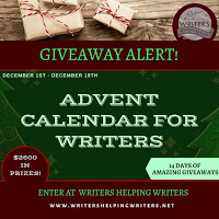 It’s the season of giving, so I've partnered up with Writers Helping Writers and One Stop for Writers to bring you a PRIZE-PACKED Advent Calendar for Writers. And when I say prize packed, I’m talking over $2600 in prizes to be won!