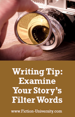 Filter words are words that put an extra layer between the POV character and the reader, such as thought, knew, realized, felt, smelled, heard, etc. They’re a form of telling, and can distance readers from the story. The narrative distance determines how told a filter word feels. A close narrative distance, such as first person, feels very told if a lot of filter words are used, where an distant omniscient narrator isn’t as affected by them, because the entire story is filtered through an outside narrator.