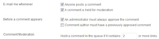 You can also make sure your WordPress settings are setup to correctly handle incoming comments. For example I recommend that you moderate every incoming comment, not just first time commentators. Often time Spammers will send an innocent comment with no link so that after your approval, their future comments will publish without moderation.