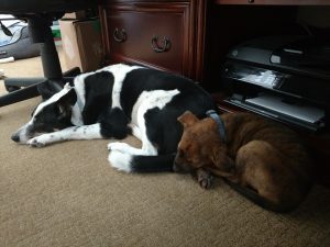 Holly in my lap while I sit at my desk in my Provo home office