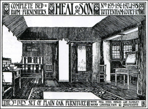 What’s immediately intriguing about the catalogues is that they tend to begin with the least expensive items: “Plain Beds for Servants”, for example, or a White Beech Bedroom Chair. You have to keep reading before you get to things like the “‘Princess Maud’ Suite, painted white, with Louis XVIth enrichments, consisting of 3ft. Wardrobe with Plate Glass Door, 3 ft. Dressing Chest and Glass, 2 ft. 6 in. Washstand (Marble Top), Chamber Pedestal, 2 Chairs” for £10 10 0 (that’s ten pounds, ten shillings). And I’m now restraining myself from typing out even more furniture descriptions. Instead, here’s an advertisement from the end of the century.