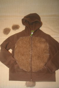The ears are still waiting to be attached. Then all we need is brown pants, some black eyeliner for a nose and whiskers, and the roaring can begin!