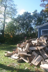 Two cords of seasoned firewood. And it all needs to go into the shed (that blue building on the right). Stacking firewood is only very distantly related to yoga: both require a gentle warm-up and no special clothing (regardless of what lululemon would have you believe). Both leave you feeling sore and smug the next day. And until things calm down around here, I'll take my meditation in action wherever I can get it.