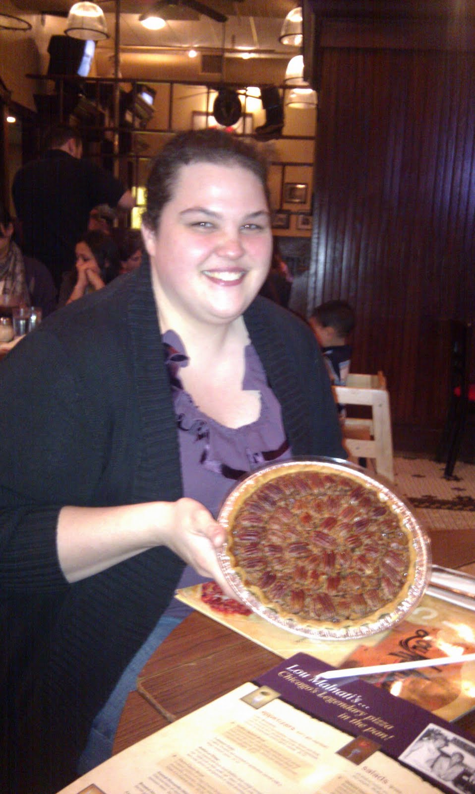 This is Stacey from PageTurnersBlog and we met yesterday at Anderson's bookstore in Naperville and she brought a (home-made) pecan pie, for me!And jolly nice it was too. In fact, so nice I had it for breakfast.