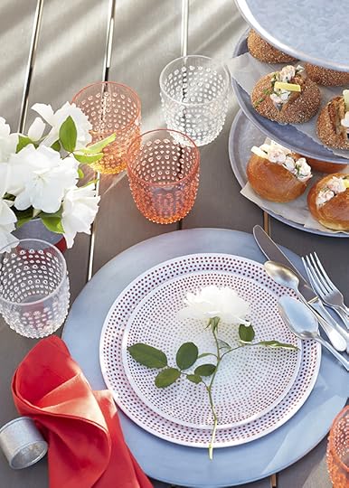 Since a lot of entertaining will be near the pool or the ocean you have to be sure to choose plastic tableware over glass. So many stores carry outdoor tabletop collections and one of my favorites is this cheerful set from Crate & Barrel.