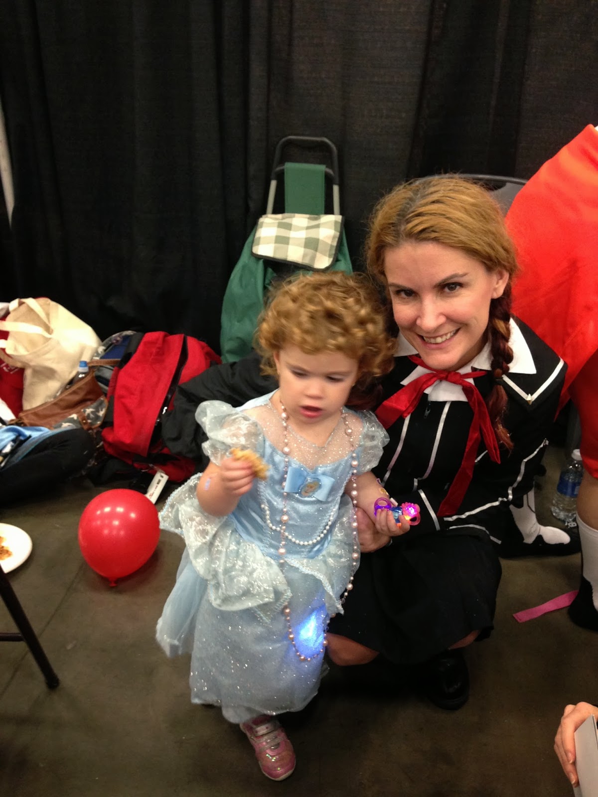 And then-- and I am not exaggerating-- we were like two thirteen year old girls. I am telling you, it was crazy. I look at Cory and she looks at me and now we're squealing. And when Captain Kirk chatted us up and told us we looked really good (which he said TWICE), we squealed some more. And shook his hand. And stood there while he signed the picture and then spent the rest of the morning reliving the thrill. Yes! It was thrilling. I'm not going to lie to you. Captain Freaking Kirk. Liked our angel wings.(in full disclosure, so did a lot of random guys in costume who asked us to pose for pics while we walked the convention floor. But whatever)