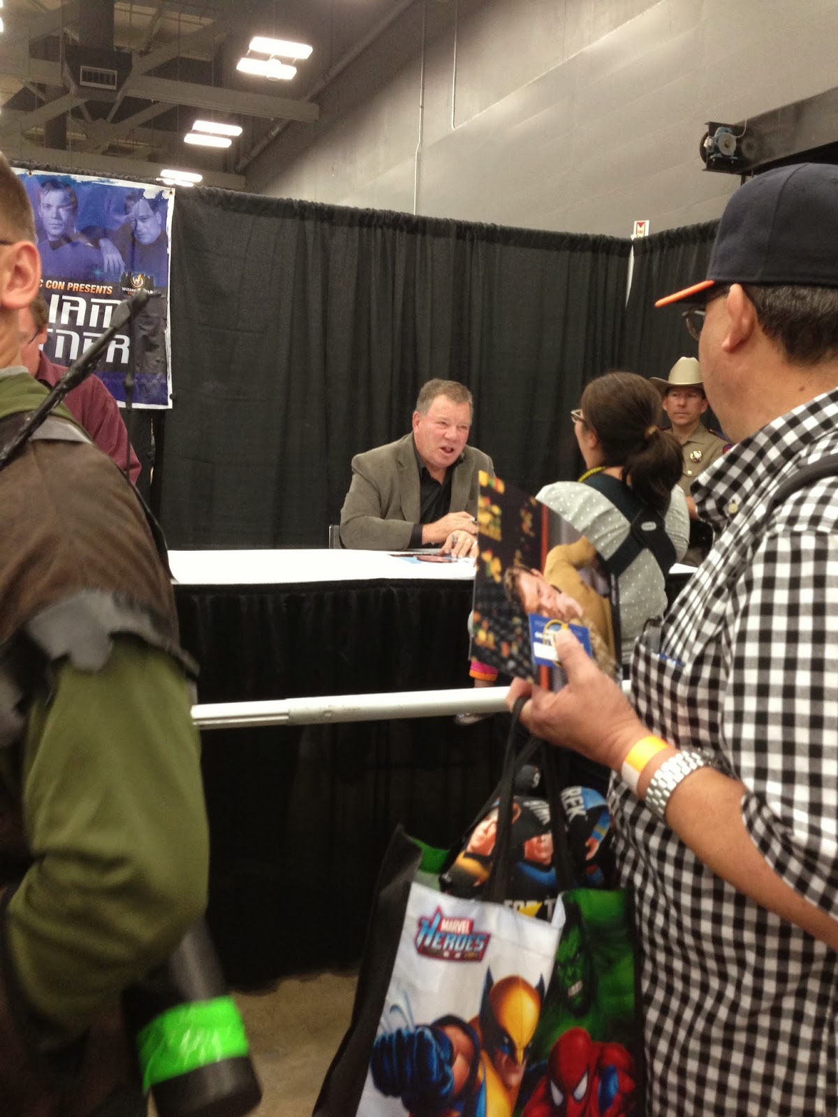 I love Comic Con! I really, really do. I know there are some who mock the fan experience, but I have to tell you that when Cory Putnam Oakes and I stood in line so she could get an autographed pic of William Shatner for her mother, who was/is a huge Trek fan, we were rather blasé at first. We were deep into publishing gossip and catching up and casting our eye rolls at the 60 something guy in full Enterprise regalia… UNTIL WE GOT UP CLOSE. Close enough to snap this contraband pic since technically you're not supposed to take pics if you're only paying for an autograph. (their rules, not mine)