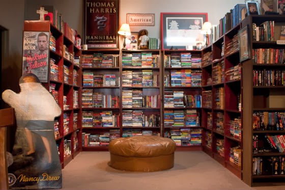 The back stacks at Murder by the BookToday I’m starting a series about my favorite Texas indie bookstores! You’ll not only get to read about these special stores, but you’ll also get the chance to win a free pre-order copy of my upcoming THE A WORD AND a free pre-order pb of THE SWEET DEAD LIFE with the brand new retooled cover!Thanks to my amazing publisher, Soho Press for sponsoring! And MBTB for shipping! (giveaway is at end of this post)