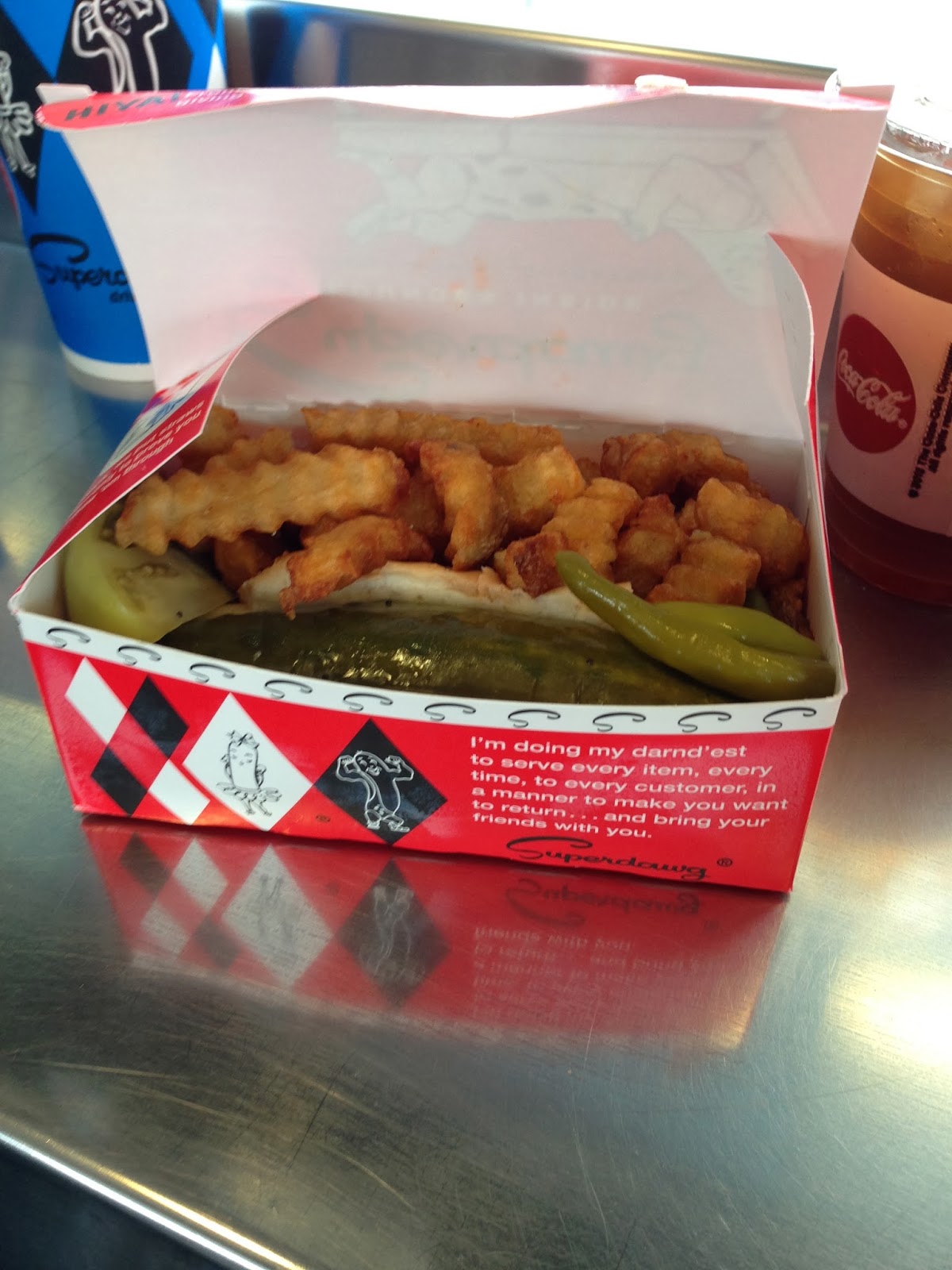 Where I ate a SuperDawg and fries. (hot dog is buried under there)