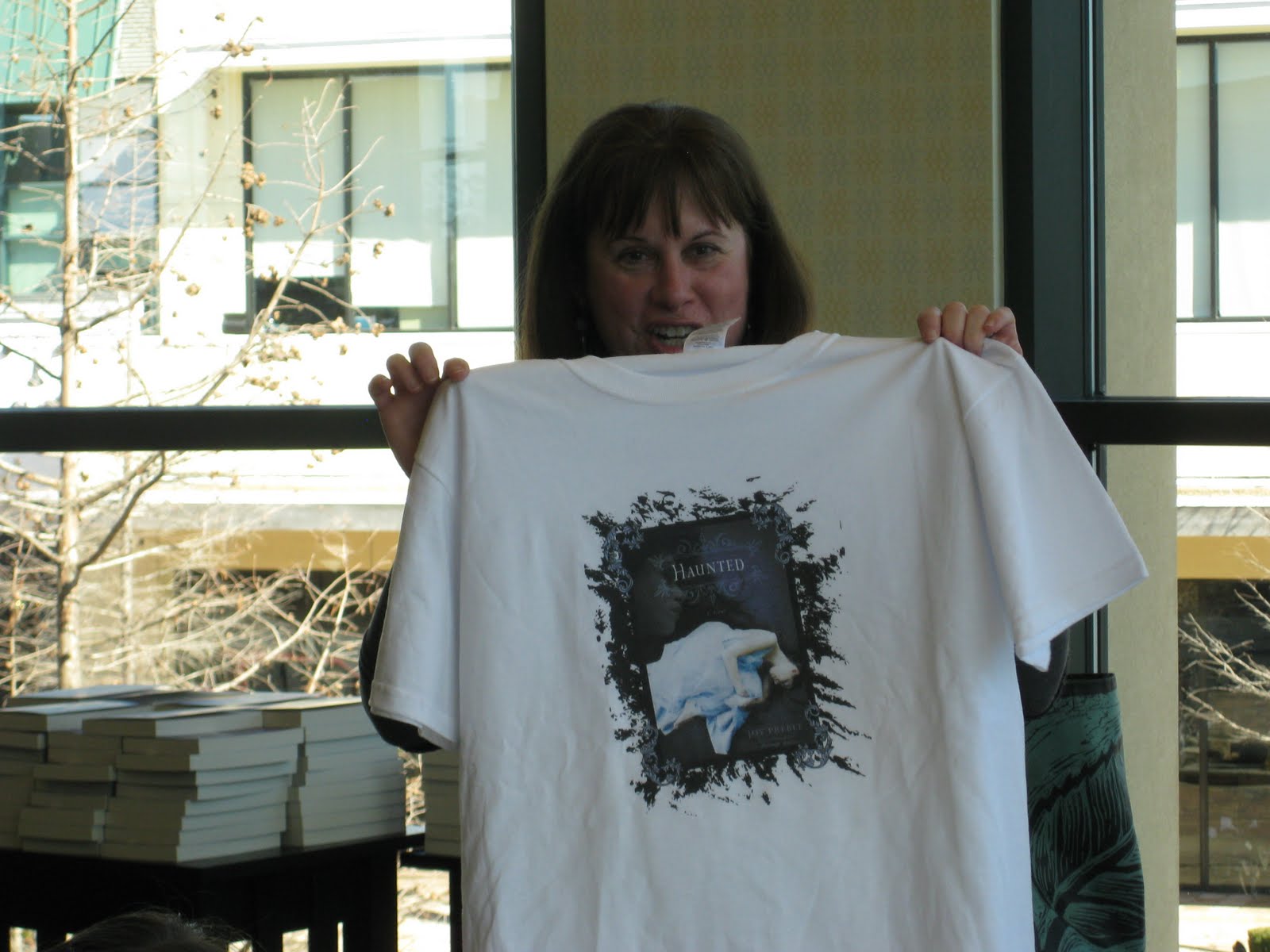 1. Launch party was so much fun yesterday. About 90+ I think... and I know it would have been more if not for the weird weather week, rescheduled sports events, etc. February is s fickle little month, esp if your book launches on the day of the great Chicago blizzard. But so good to meet you all/see you all/give away Haunted t shirts, eat cake... If you took pics, post them/send them/let me see them! I got only a few on my camera... too busy saying hi!
