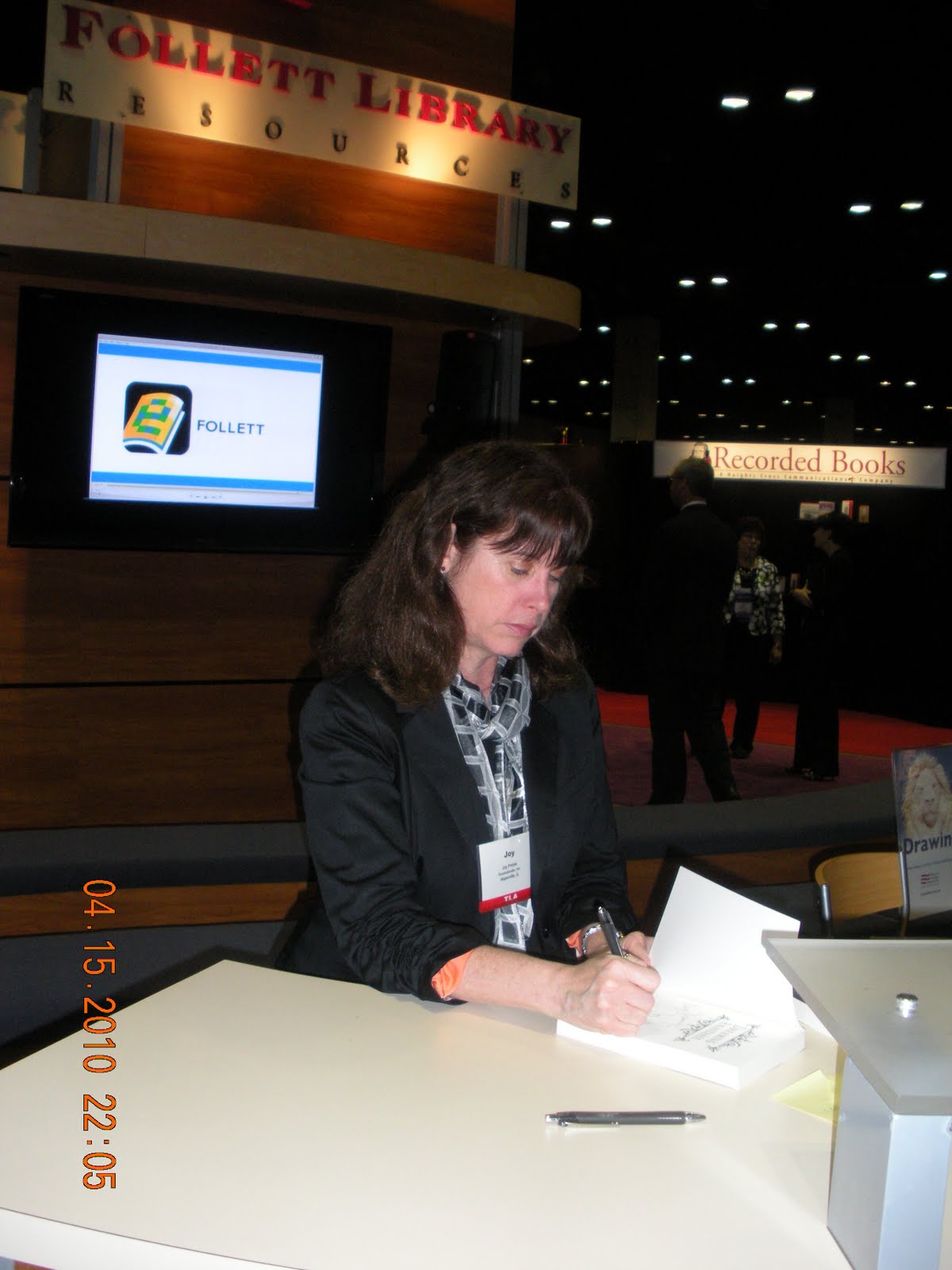If you ask, you receive! And so I did - pictures from TLA. Thanks to Tanya Adams at Follett for sending along the first one of me signing a few extra books for them and to Stephanie Pellegrin for the second one!