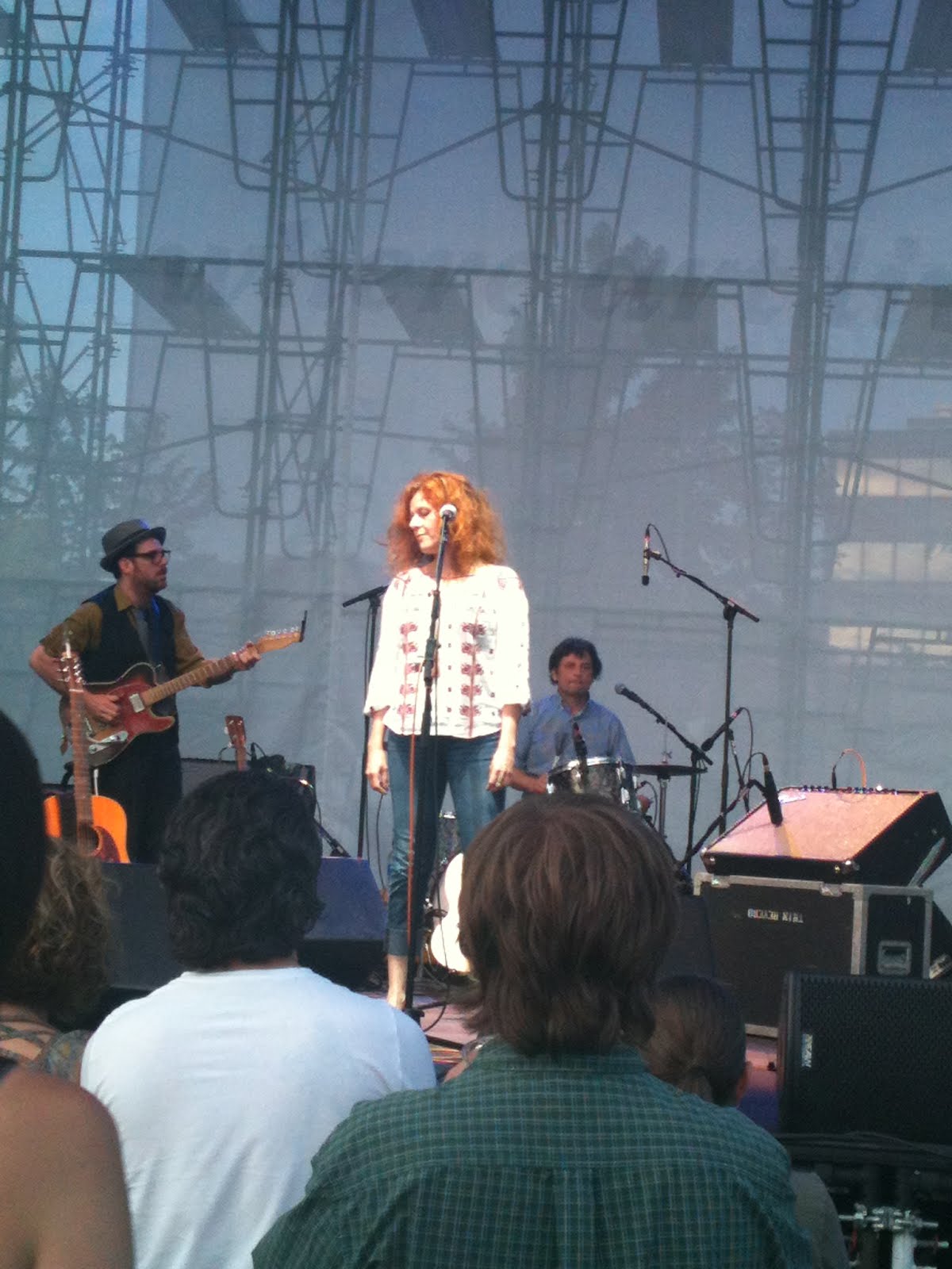We found a great spot (oh-so close to the stage!) for the Neko Case concert on Saturday night. I was struck by the fact that Neko wasn't wearing makeup, dressed kind of like a soccer mom, and wore super comfy shoes. She didn't use props and her only costume change consisted of tucking tassels into her pleasant blouse when she played guitar because they got in the way.