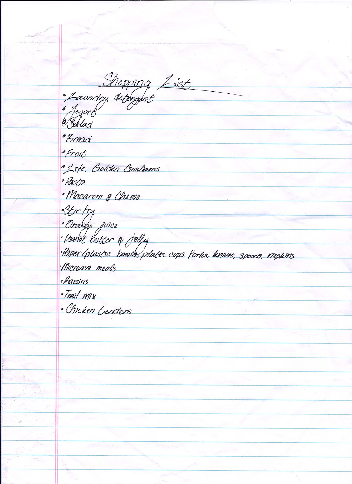 So far I've imagined a Starbuck's employee's tumultuous breakup, written a voicy piece about a rebellious teenage couple who actually have a really good relationship, and I stretched myself by seeing things from a too-curious Seeing-Eye puppy-in-training's point of view (I wish I had a photo of that cutie!). Last week I found a grocery list on the floor of my supermarket and wrote about the woman behind the ingredients. Here's the list so you can try it too: