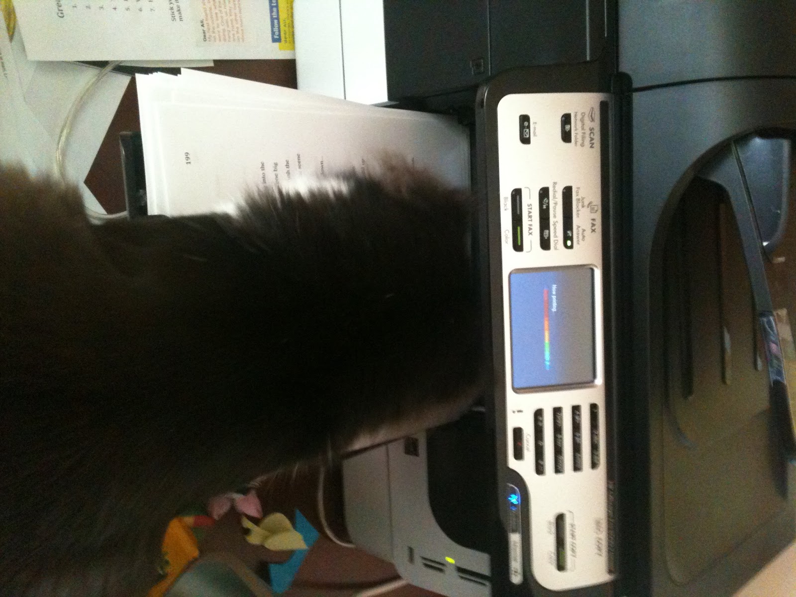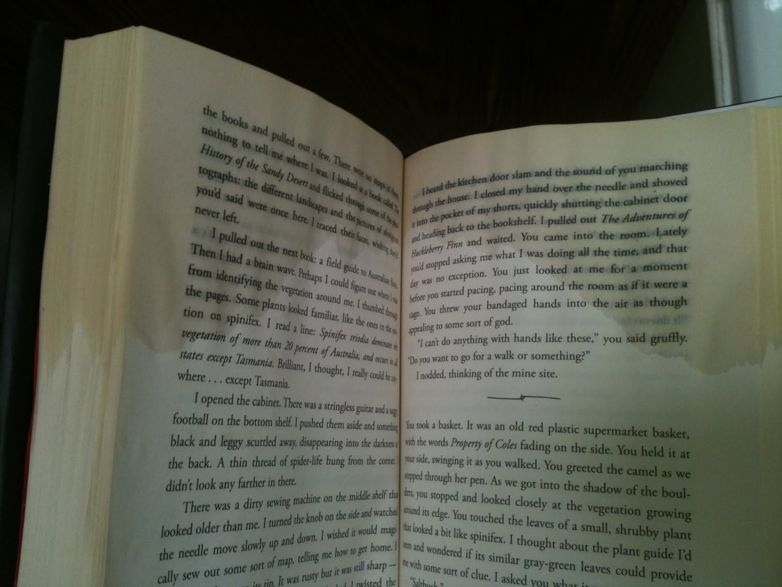 My first thought: I'm so glad this isn't an e-reader! Minnie skittered away, trailing her soaked tail, and I kept reading, carefully turning each wet page (it's a seriously compelling story!).