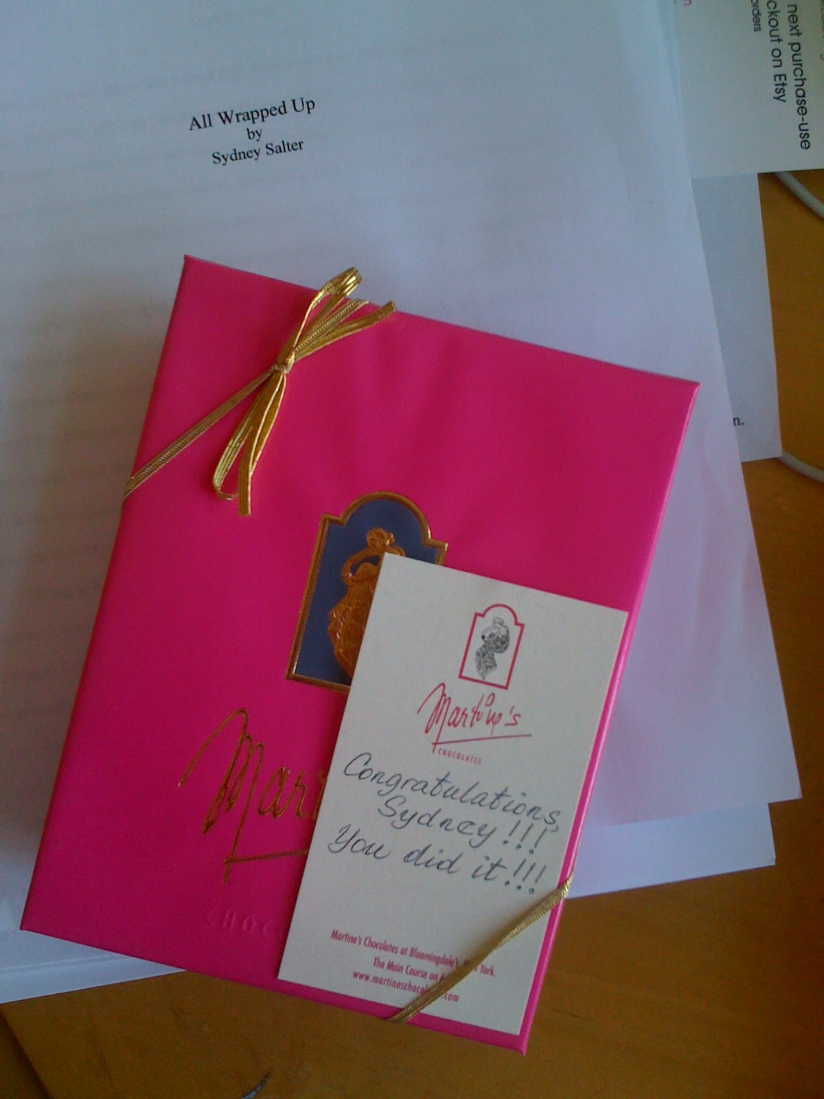 Today I ordered a small box of Martines Chocolates for when I type the words "The End" sometime next week...