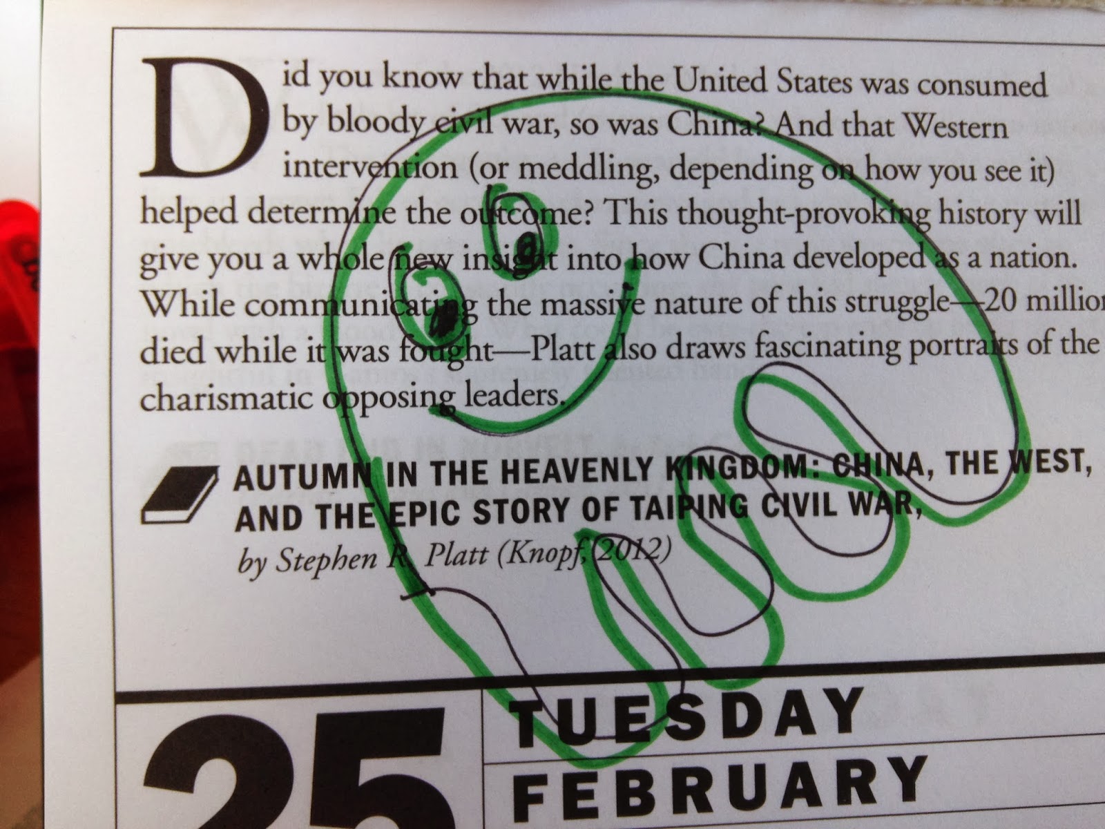 Heck, yeah. I want to know about China's Taiping civil war. I want to go to China someday! I love learning! I love reading about everything! Books, books, books, more books!