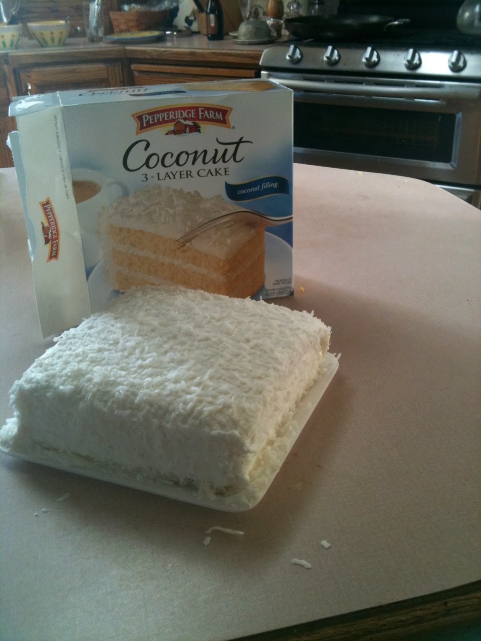 Confession: I don't think I can force myself to chow down on another partially-frozen Pepperidge Farm cake. I might make my own much more delicious and moist coconut cake on May 1st!