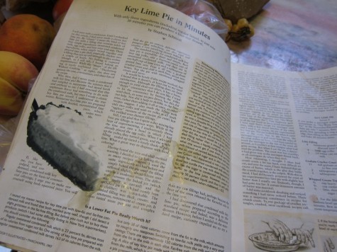 Oh, and it has a killer recipe for key lime pie. I use it to this day. As you can see from the nasty stickiness all over the pages.