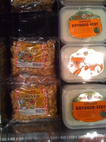 S— knows me well. She'd held off on shopping so that I could go to the supermarket and gawk at everything. The first thing she pointed out to me were these little crumbly things you put on top of pate for a smorrebrod.