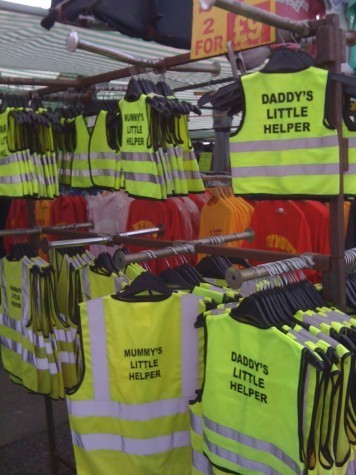 We hiked down to Blackbushe Market, which sounds twee because it has a little -e on the end, but is really just a gargantuan parking lot with people selling socks, DVDs and cheap clothes. You can shop from secondhand, garage-sale people for free, but it's 50p entry to mill around the new stuff.