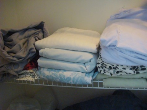 A couple of days ago, I peered into the shelf where we keep the sheets and towels, and something looked odd. I couldn't put my finger on it.
