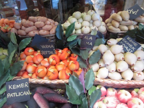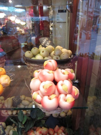 Check out these marzipan fruits in a storefront in Istanbul. A couple of them look like they could be the mysterious fruit.