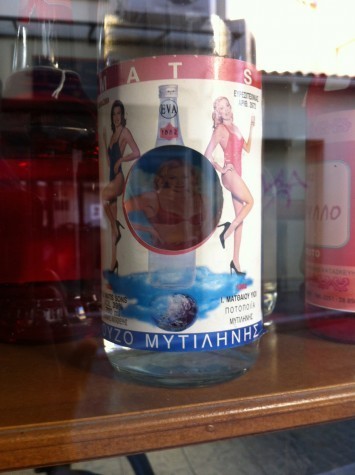 OK, actually, this was more of a visual thing than a taste thing. They make a lot of ouzo–most of the ouzo–on Lesvos. It’s great. I don’t drink all that much these days, but I always wish I’d drunk more ouzo so I could look at the bottles.