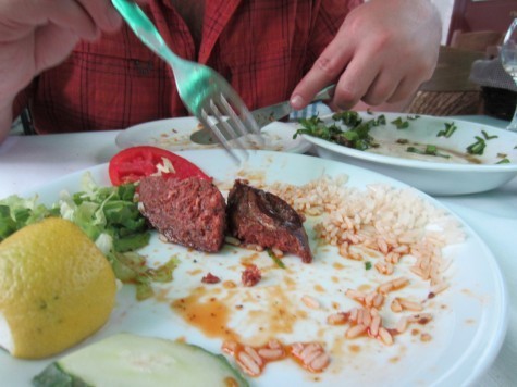 We marveled at the sensation of hot chili in our throats. The Greeks aren’t so into spicy-hot, and we hadn’t tasted it for weeks. The sausage was spiced like basturma, which is to say, intensely, with coriander and pepper and more. It was a mix of beef and lamb. It was superb.