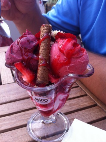 I love Mado ice cream. To Turks, it’s probably only as exciting as Haagen-Dazs, but to me, it’s the most fantastic ice-cream brand, the height of luxury. It’s all goat’s-milk, and the fruit flavors (which I think are fruit-only, no dairy, but who knows?) are so intense, it feels like the fruit is communicating directly with your brain, bypassing your tongue entirely.