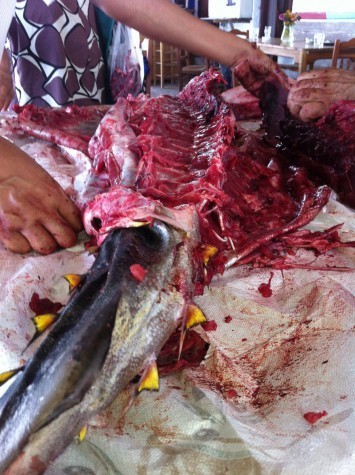 We left Costa to clean up. Remarkably, everyone else at the restaurant was placidly enjoying their lunches, not batting an eye. If they’d been butchering a sheep, of course, the tourists at least would’ve run off screaming. Why are fish so different?