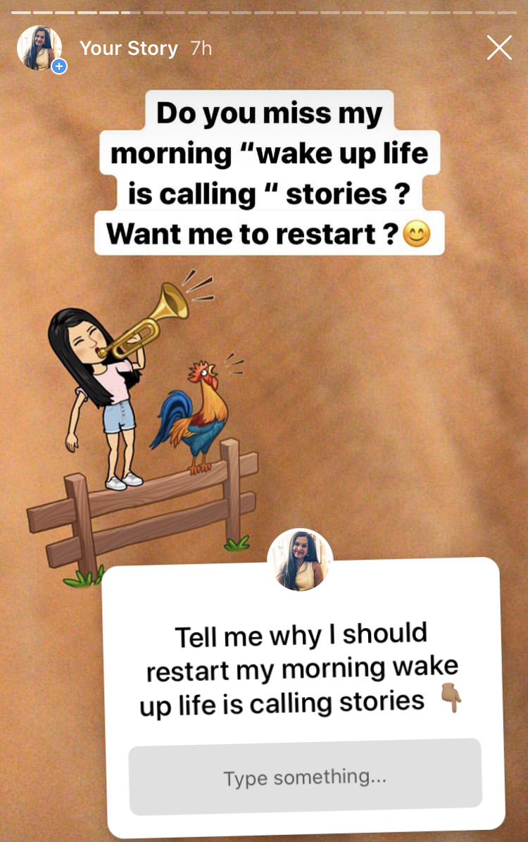 People who follow me on Instagram know that I post a story each morning, a short video of something interesting (mostly the greenery around my home, or a flower which bloomed etc) and say 'Wake Up Life is Calling.'