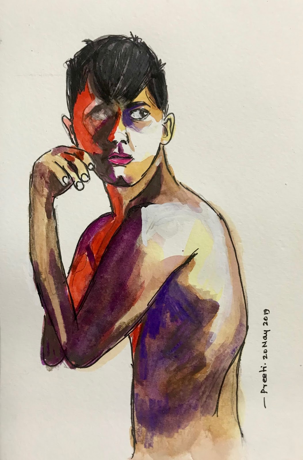 Today I restarted my practice of making a portrait daily. I used to do it every single day. I am a part of an International Artists Community. (Check out thousands of reference photos on Sktchy which is currently for iphone users only)