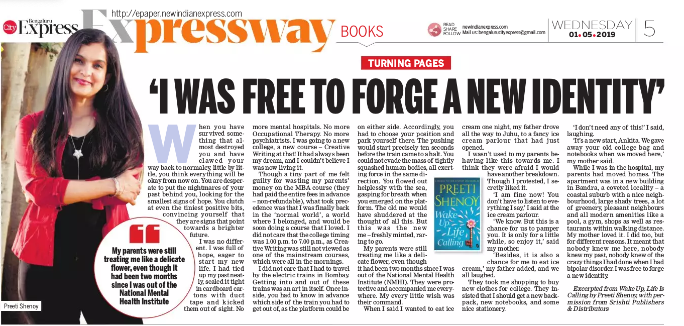 Indian Express: http://www.newindianexpress.com/cities/bengaluru/2019/may/01/i-was-free-to-forge-a-new-identity-preeti-shenoy-1971270.html