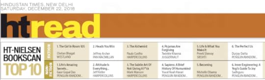 As always, all my Saturdays begin with checking the HT nielsen best seller booklist which is published in Hindustan Times every Saturday.