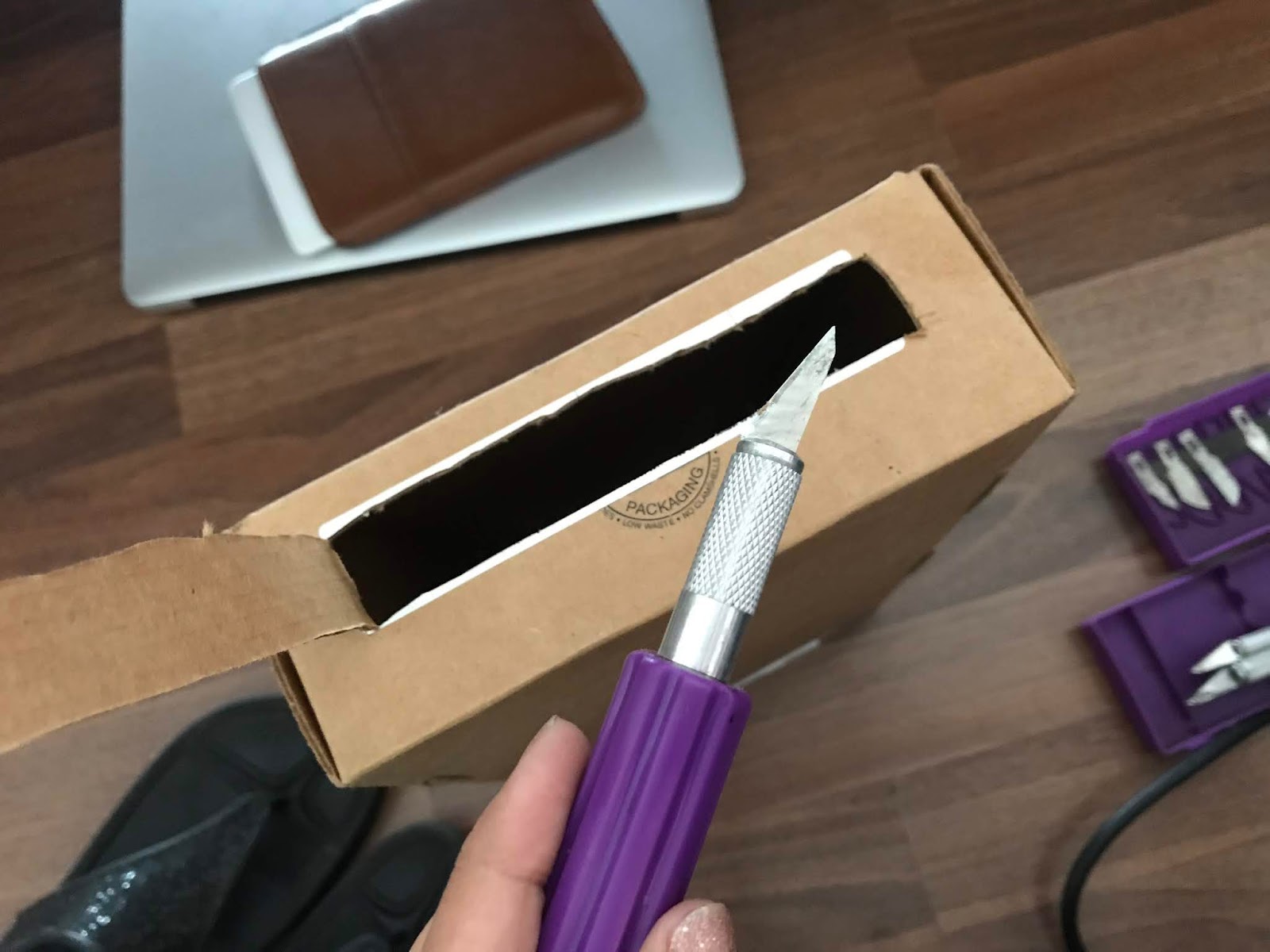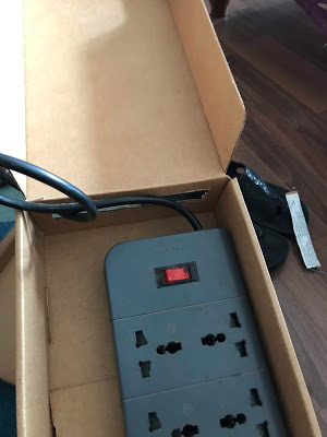 Step 3: Place your extenion plug inside the box, and take out the wires through the slit.