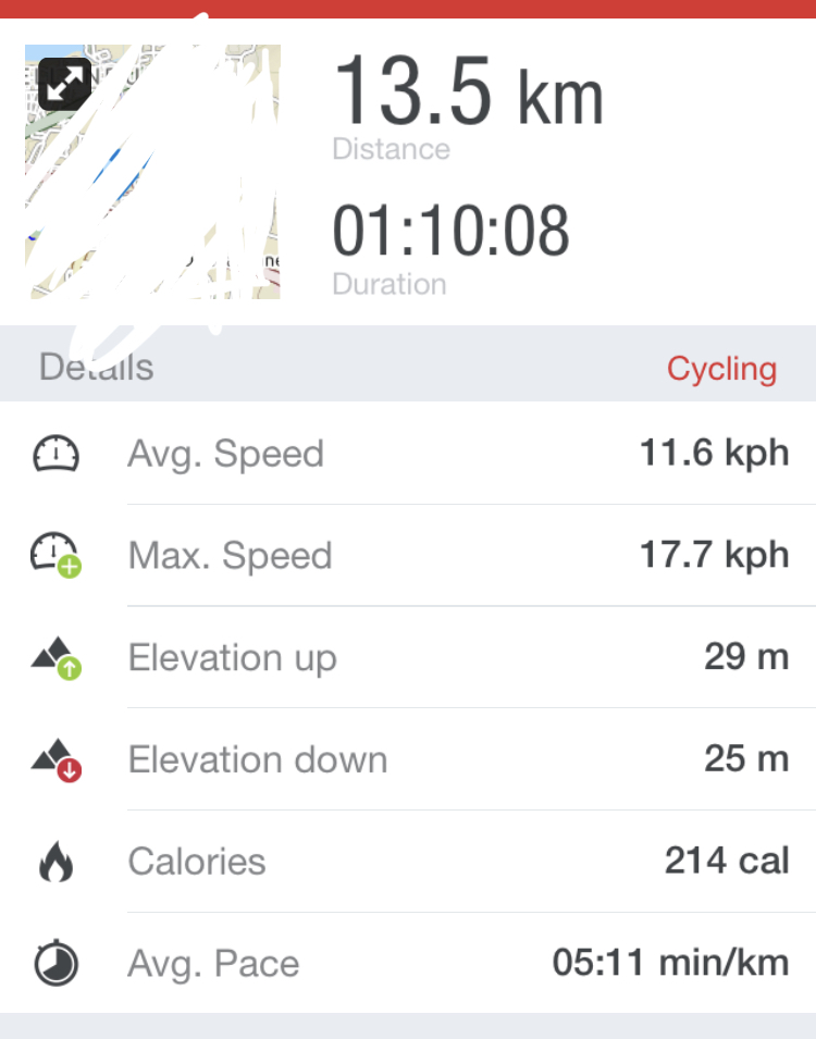 I can't tell you how IMPORTANT this is. Initially I found it very hard to do. But you will be surprised how quickly, your body gets used to it. I set my alarm for 5.00 am these days. But most days now, I am awake even before my alarm rings. I then cycle for an hour daily. I have an app that measures how much I cycle. I am sharing a screenshot below (edited out my location details for obvious reasons):