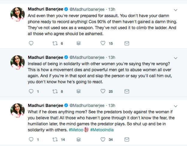 Then there were allegations by Sanjana Chauhan who in addition to being a News anchor and editor, is also an erotica writer.